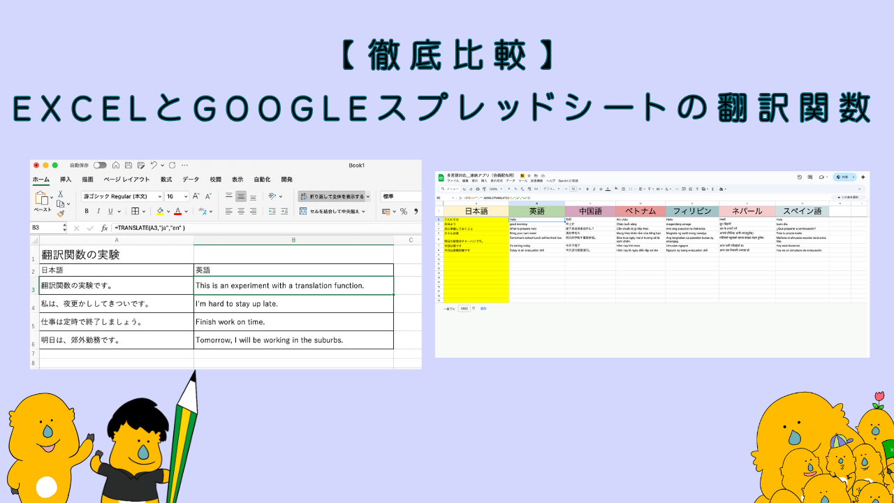 | 翻訳機能の提供形態 | Excel機能として標準搭載(Current Channel以降) | スプレッドシートの標準関数として常時利用可 |