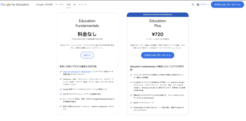 | 機能カテゴリ | Education Fundamentals(無料) | Education Plus(有料:年額一人720円〜) |