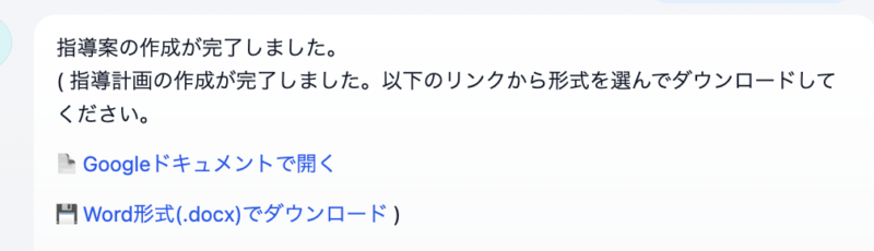 これにより、複雑な指導計画作成も、普段のチャットと同じ感覚で進めることができます。