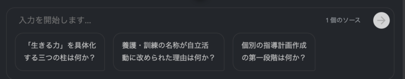 私の挑戦は、文部科学省のウェブサイトで公開されている「特別支援学校教育要領・学習指導要領解説 自立活動編」のPDFファイルを、NotebookLMにアップロードすることから始まりました。