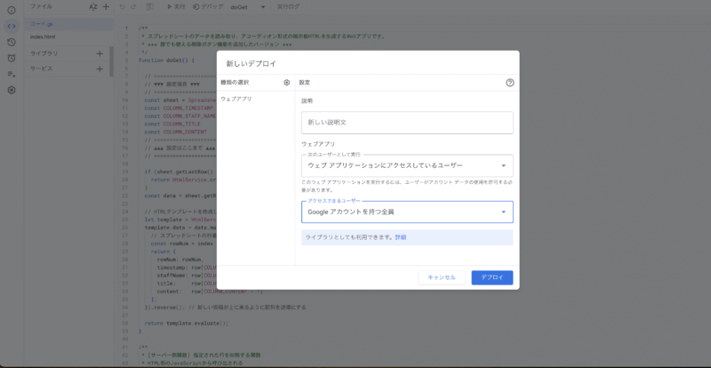 ステップ3:掲示板の公開(Webアプリとしてデプロイ)