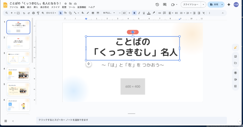 これにより、最終的な微調整(学校にある実物の写真への差し替えなど)は、使い慣れたGoogleスライド上で自由に行うことができます。