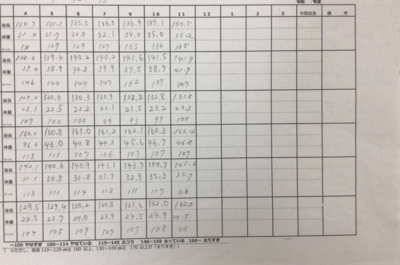 - 業務の二重化と膨大な作業負荷: 毎月の測定データをまず記録用の原簿に記入し、その後、保護者へ通知するための個人別成長記録表に再度手作業で転記・グラフ化するという二重の作業が発生していました。生徒数が増えるほど、この作業時間は比例して増大します。